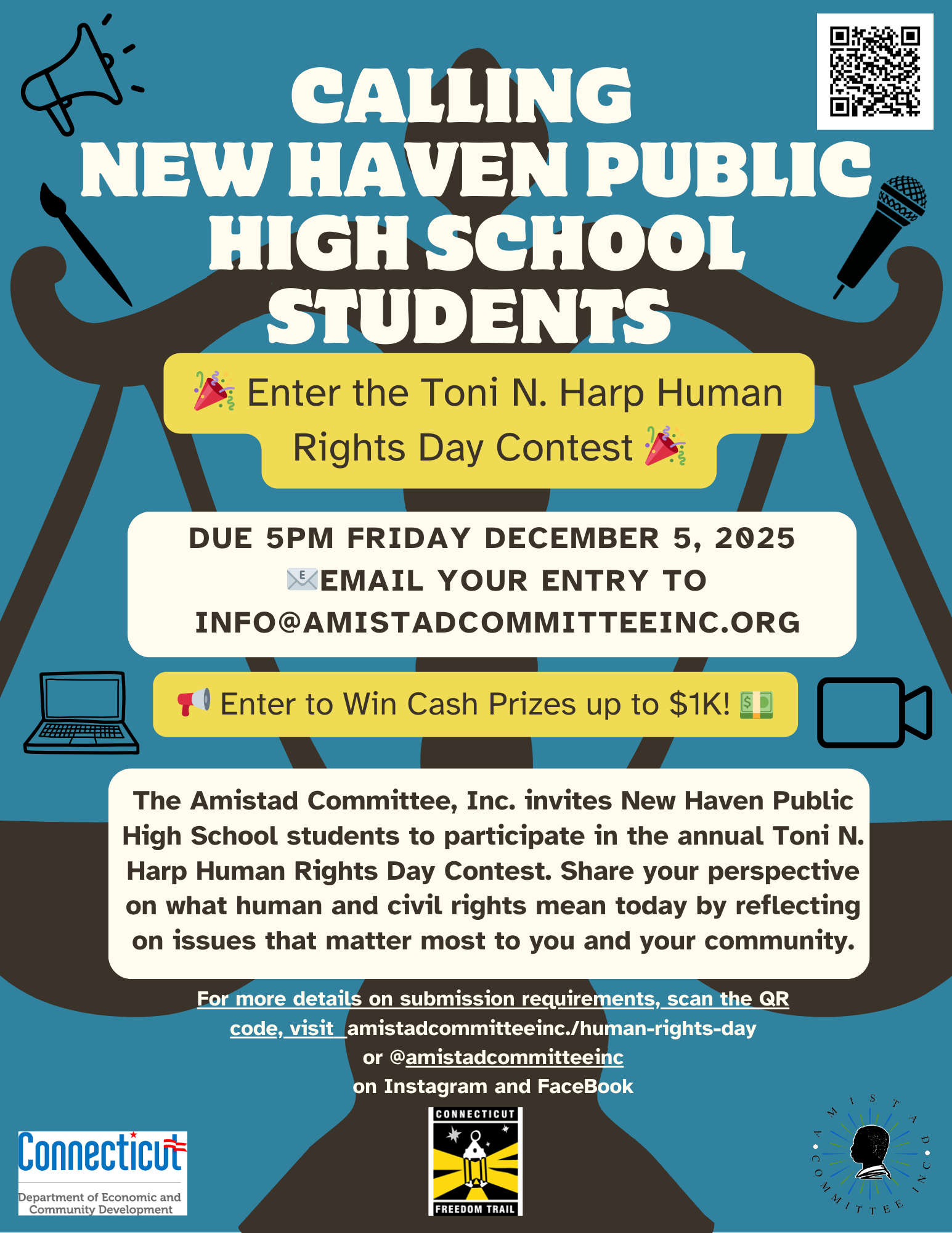 The Amistad Committee Inc. annually celebrate Human Rights Day & the U.N. Universal Declaration of Human Rights, on Dec. 5th. with the Toni N. Harp Human Rights Day Essay Contest for New Haven public high school students.